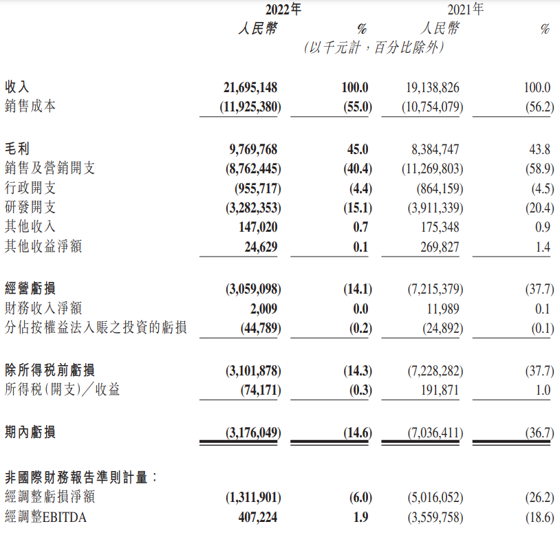 8 月 23 日港股盘后,快手发布 2022 年第二季度业绩:营收 216.95 亿元,同比增长 13.4%;净亏损 31.76 亿元(调整后净亏损 13.1 亿元),亏损率为 14.6%,净亏损及亏损率已连续三个季度大幅收窄。
