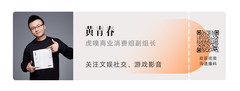 #我是虎嗅商业消费组副组长黄青春,关注文娱社交、游戏影音等多个领域,行业人士交流加微信:724051399,新闻线索亦可邮件至 huangqingchun@huxiu.com.